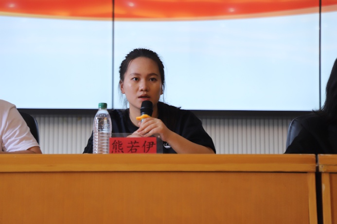 (图为学工办辅导员熊若伊发言)